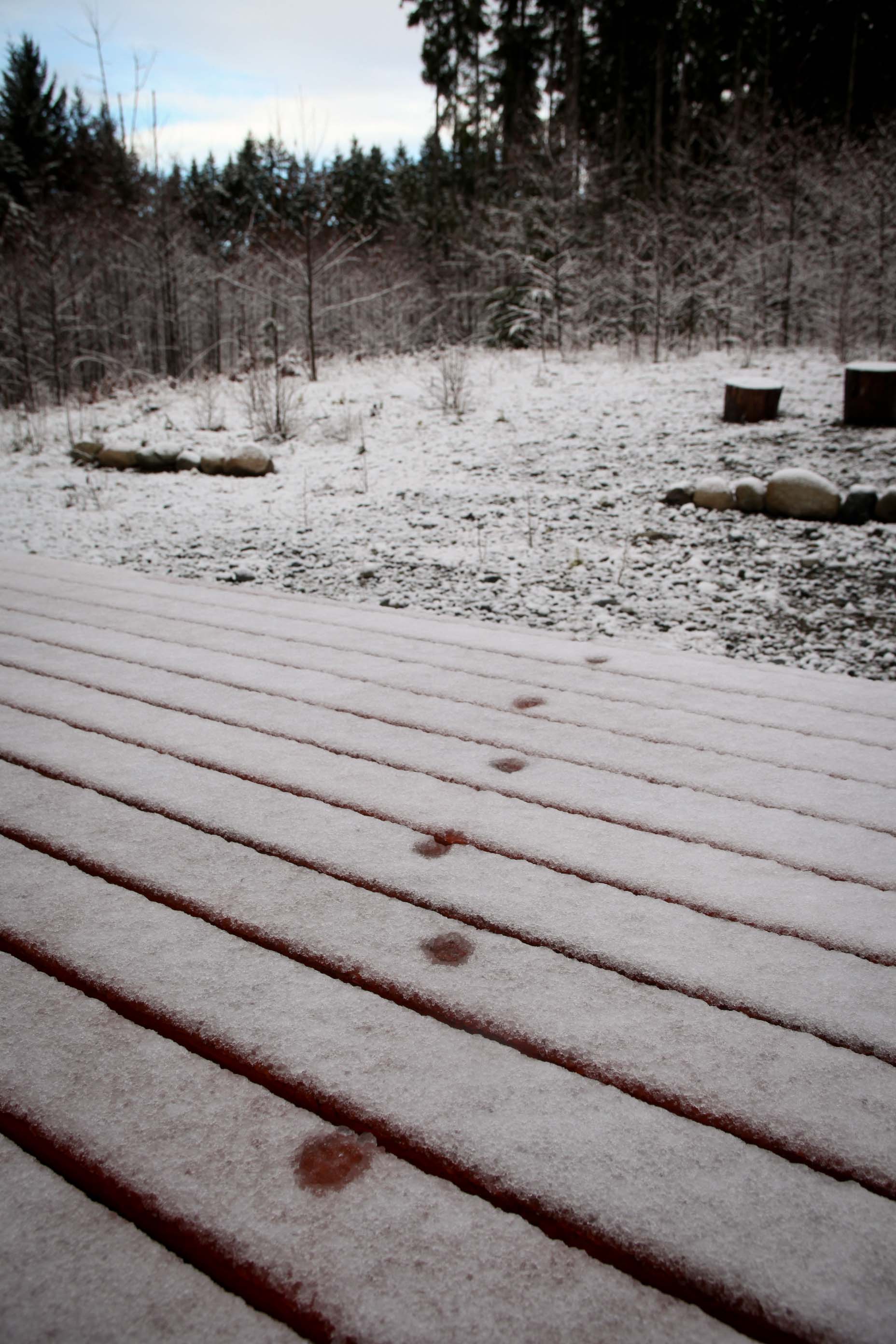 山の中にあるため、翌日はなんと雪!