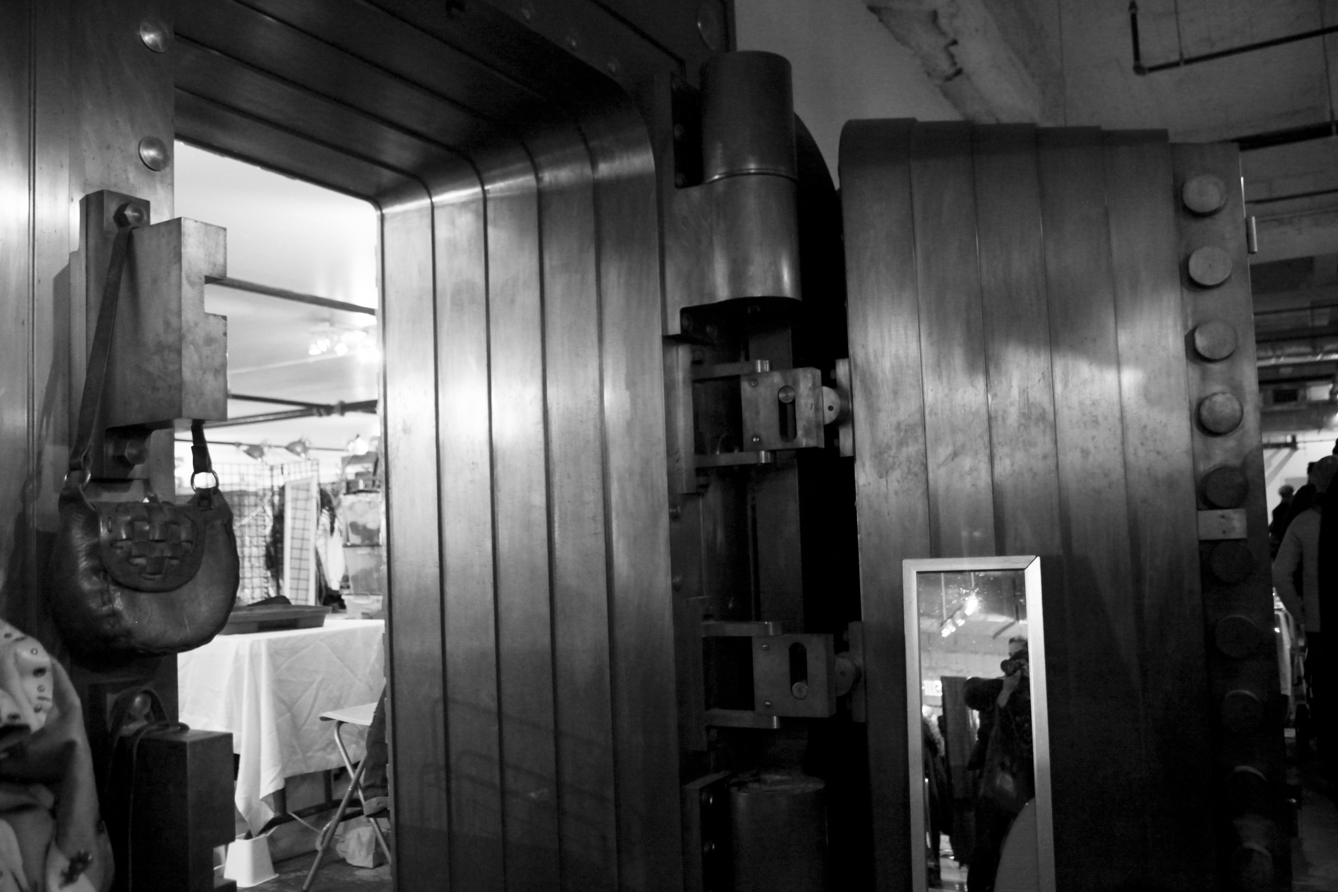 銀行だっただけありまして、金庫がすごいのです。友達と、閉じ込められたらどうやって逃げよう〜と話してましたが、とんでもなく分厚い扉です。