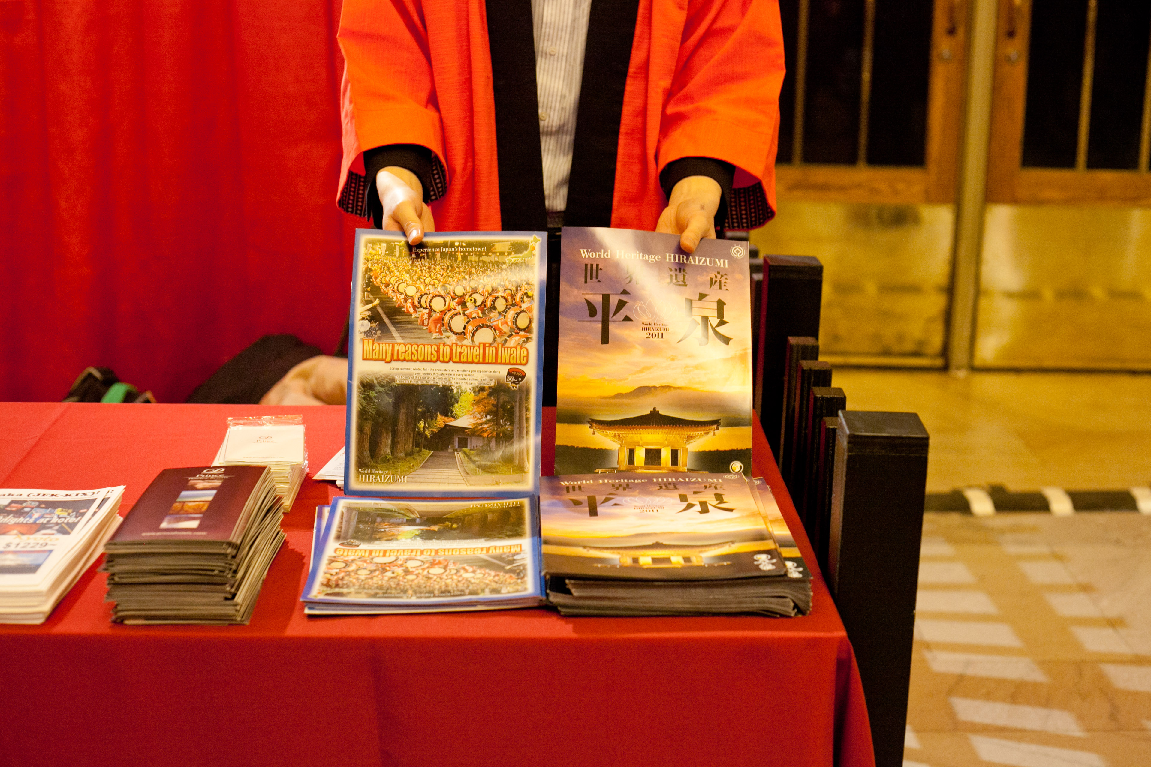 Japan Weekというイベントが、グランドセントラルステーションで行われていたのですが、駅弁が売られていたり、夜はきき酒コーナーがあったり様々な催しがありました。日本の文化を紹介しつつ、どうぞ日本へ旅行にいらしてください!とアピールする観光局もからんだイベントだったので、ブースも多くありました。そして私達はそちらで岩手のパンフレットを配っていました。もちろん県人会の皆さんなのでボランティアです!他は、ホテルさんだったり、企業さんだったり、県なども職員の方だったりしたのですが・・・(笑)