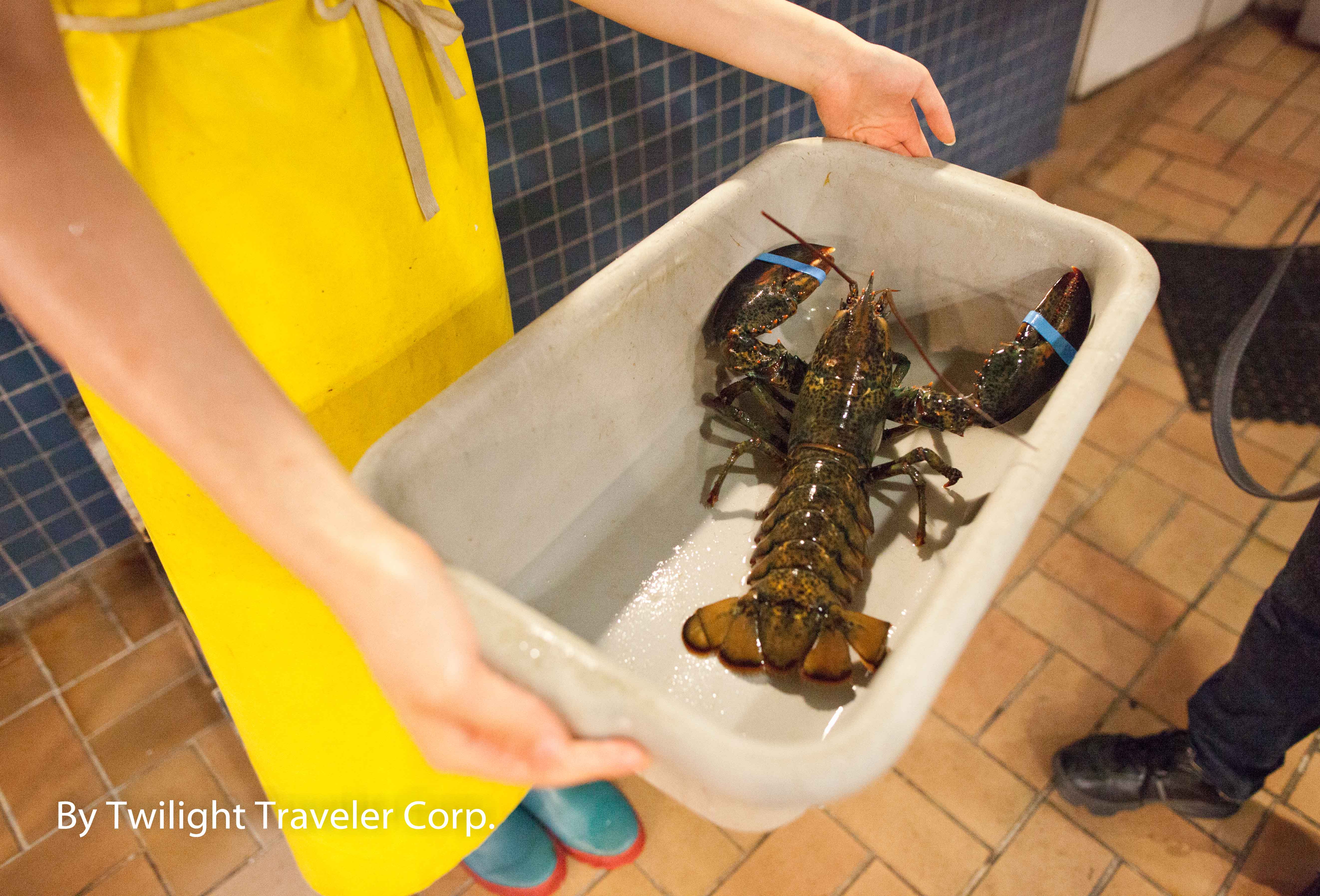 (↓ 生前中(笑)のロブスター!大きいですよ〜2パウンド=1キロちょっとありました!)