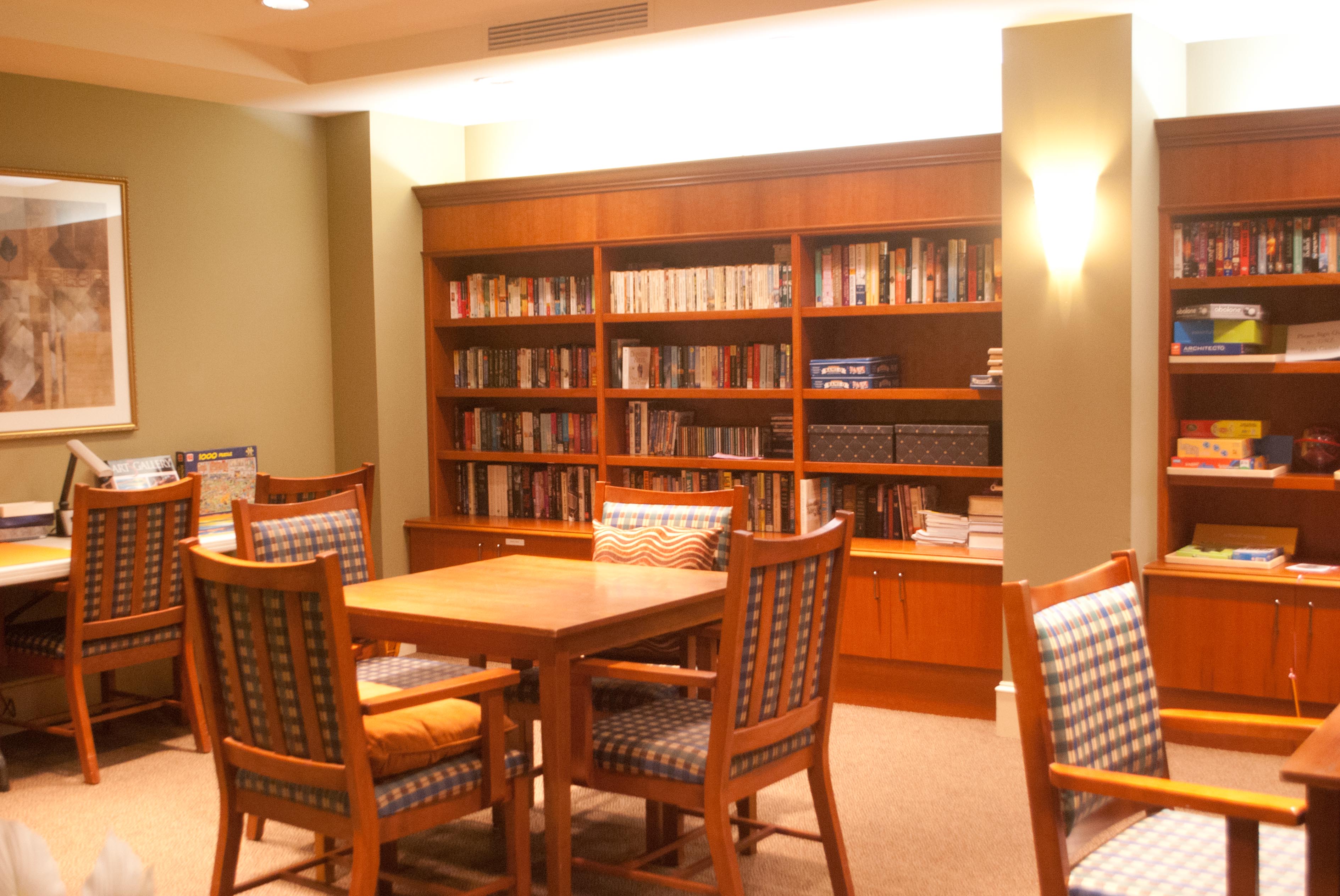 ↑ 施設内の図書室です。